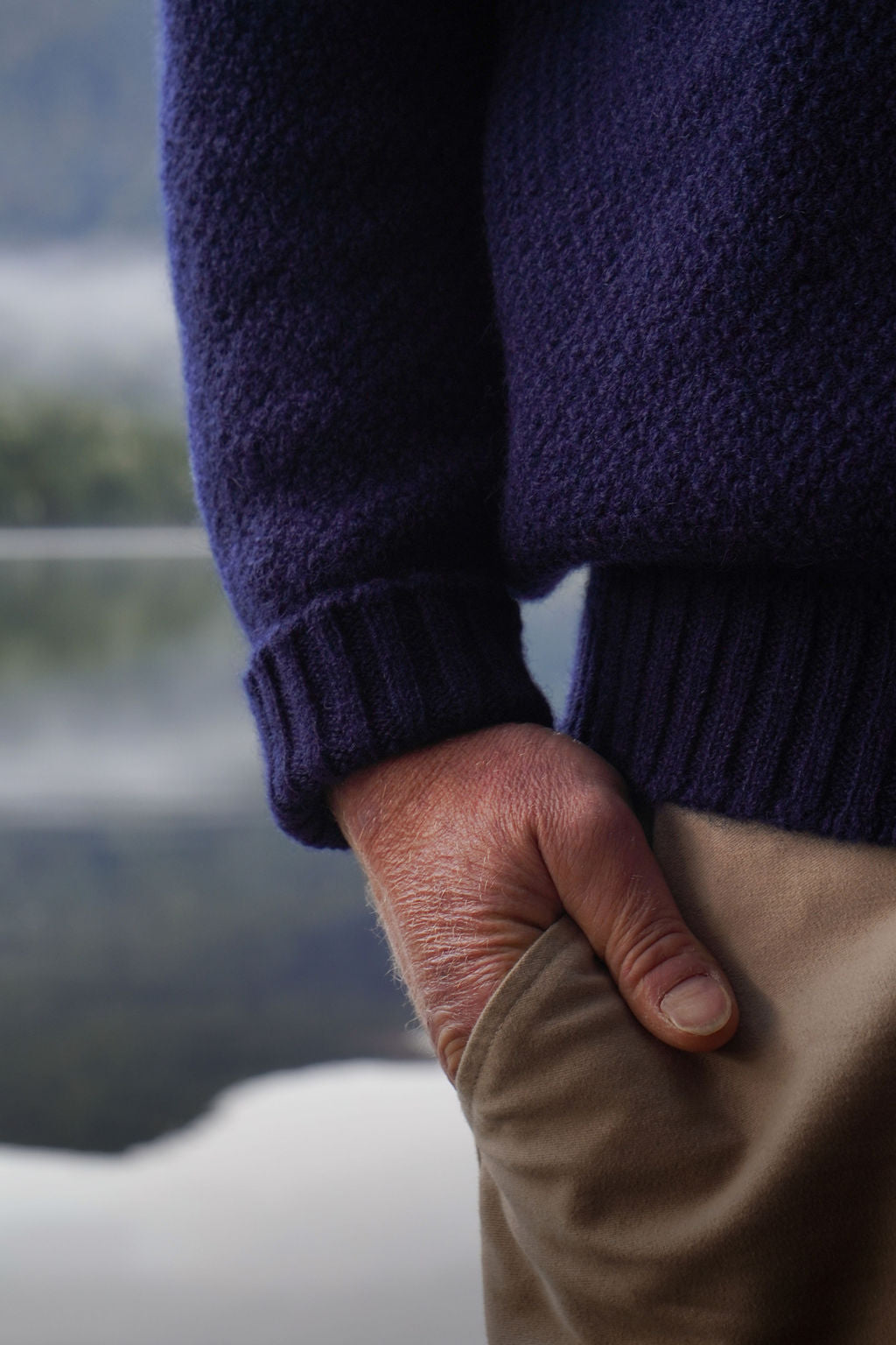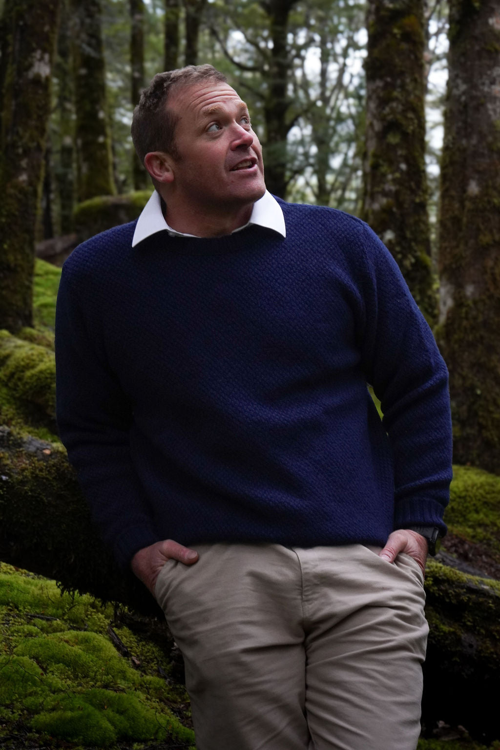 The Moss Jersey. Our latest addition to our men's range, this timeless crew is knitted in a moss stitch, giving it a rich texture and classic look. Made from 100% wool grown right here on our Southland farm, it’s warm, breathable, and naturally insulating — everything you want in a reliable outer layer. The perfect piece to throw on and head out in, season after season.